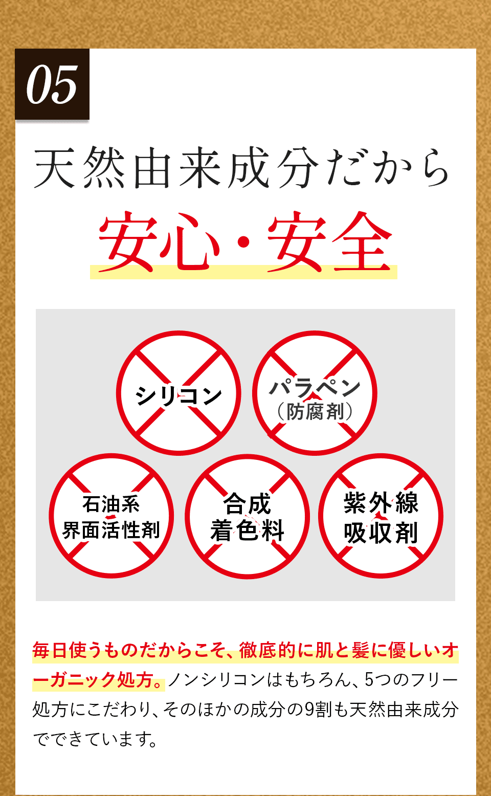 頭皮と毛髪のケアに着目した、自然由来の美容成分を贅沢に配合しました。